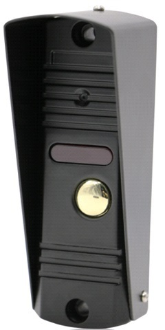 Цветная 4-х проводная вызывная панель, 1/3" CMOS 600ТВЛ, угол обзора 68°, ИК-подсветка до 3м, питание DC 12В от монитора, рабочая температура -40°С до +50°С, в комплекте уголовой кронштейн, козырек, размер 122x41x23мм, цвет черный