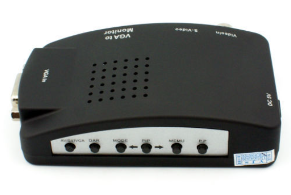 Конвертер видеосигнала видео вход: BNC, S-Video, VGA видео выход: VGA Частота 60-85Гц, разрешение 640х480, 800х600, 1024х768, 1280х1024, экранное меню, настройка яркости, контраста и насыщенности, питание 5В (адаптер в комплекте).