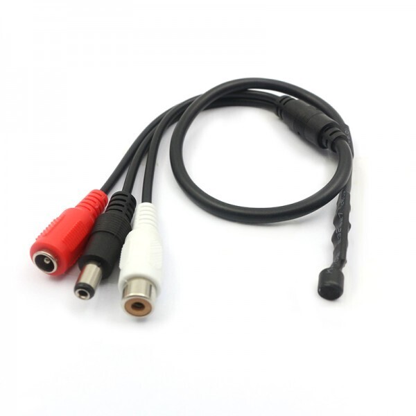 Микрофон миниатюрный с кабелем, покрываемая площадь до 50 м2, частотный диапазон 200~10kHz АЧХ 2.5 dB, подключение: питание вход/выход, аудио RCA, DC 9-12В