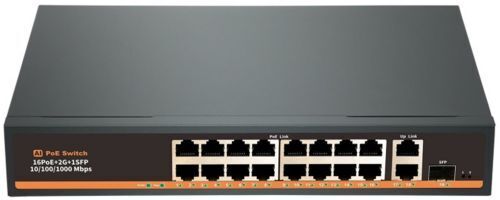 16 портовый коммутатор 10/100Мб/с с поддержкой Auto-MDIX PoE, +2 порта 10/100/1000Мб/с + 1 порт 10/100/1000мб/с SFP, на порт max. 30 Вт (IEEE802.3 af/at), WatchDog, общая до 250Вт, AC 100-240В, 50/60Гц, металлический корпус, 270x180x44мм